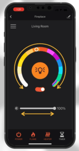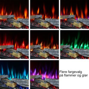 I tillegg til at du kan kontrollere peisen med det innebygde panelet og fjernkontrollen, kan denne også styres med app – da kan du styre farger, timer, varme og alt annet fra telefonen, og om du vil legge inn automatisering av av/på til ønskede tider.